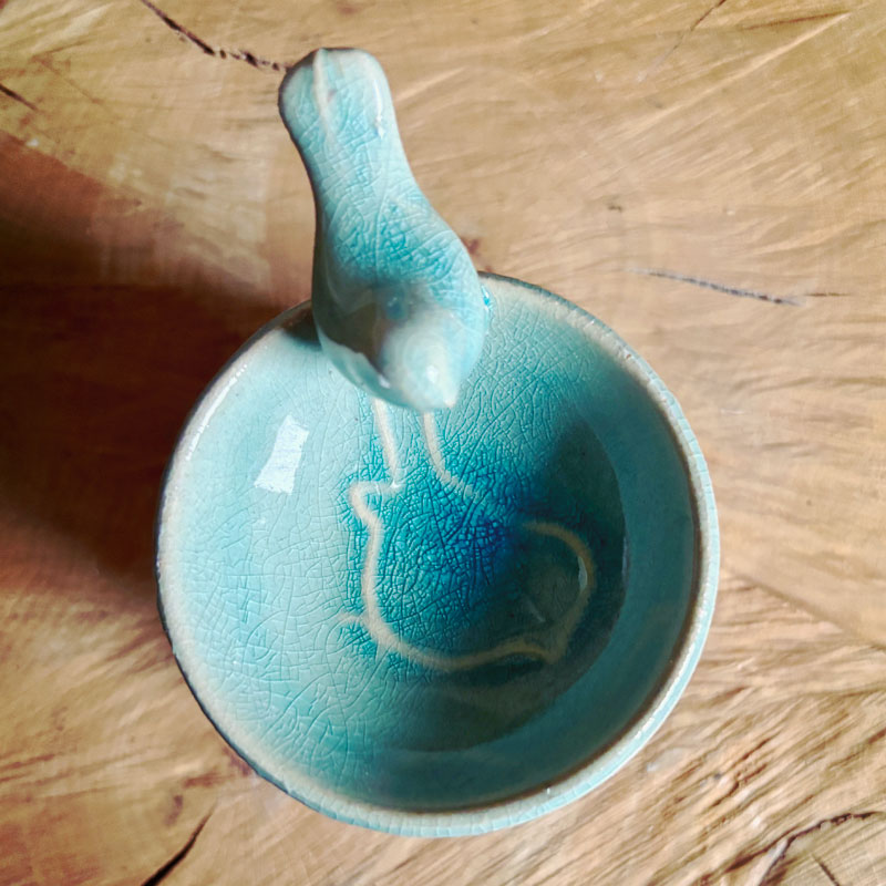 Duftlampe | fuglebad i keramik med lys mintgrøn glassur er en lille duftlampe.
