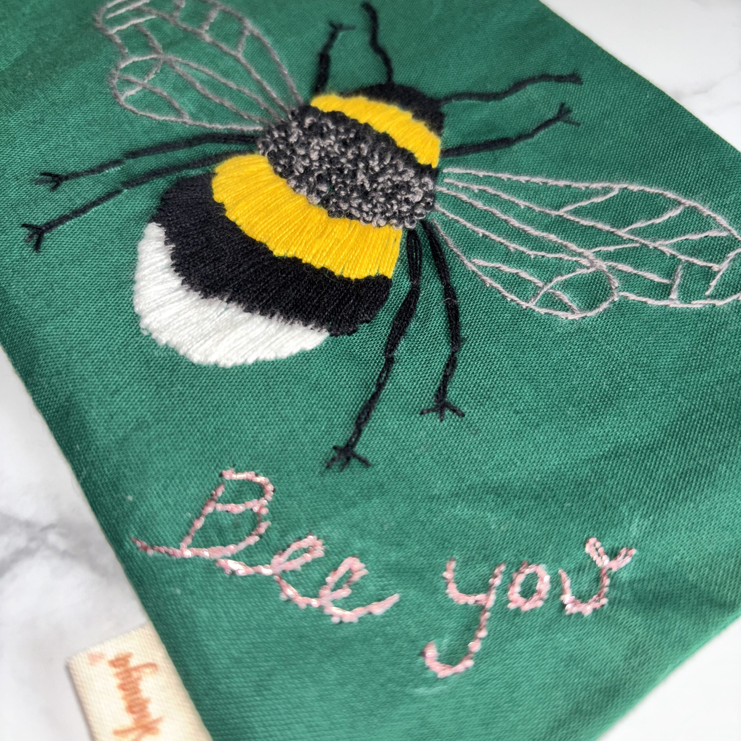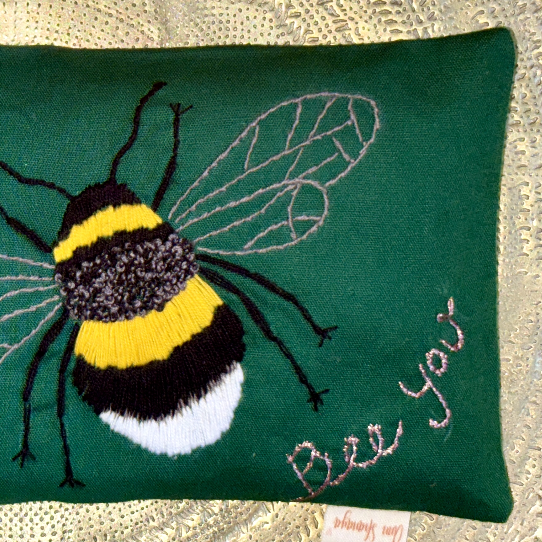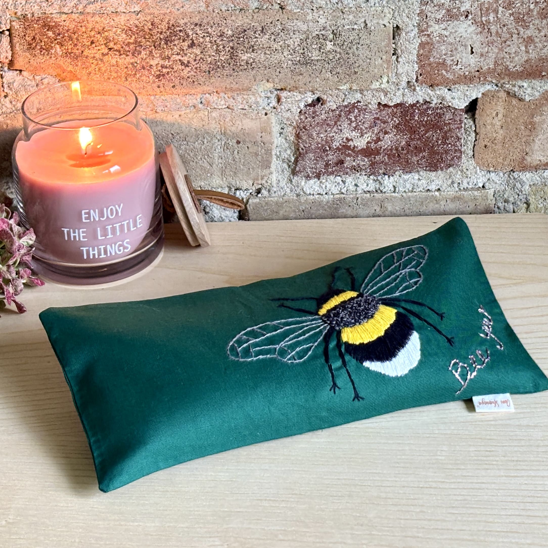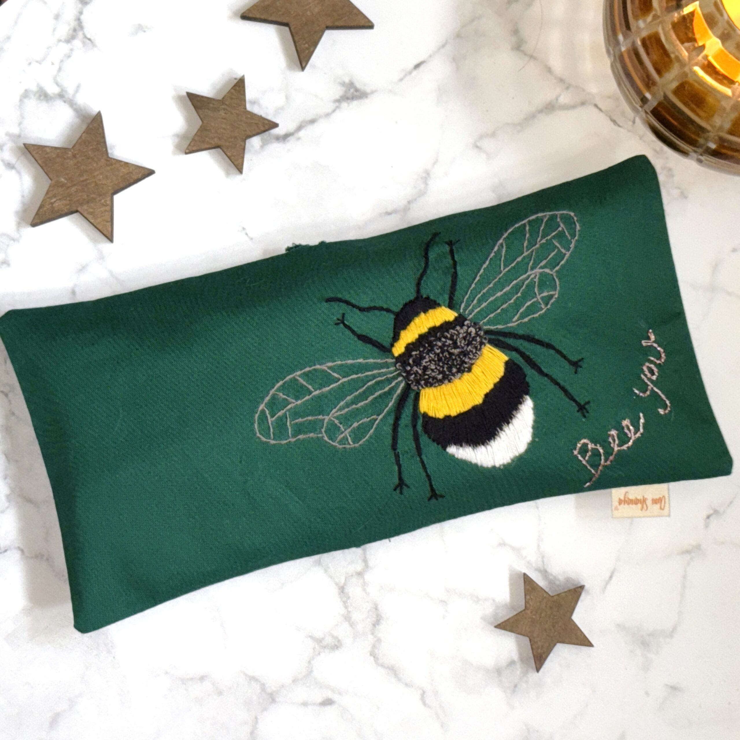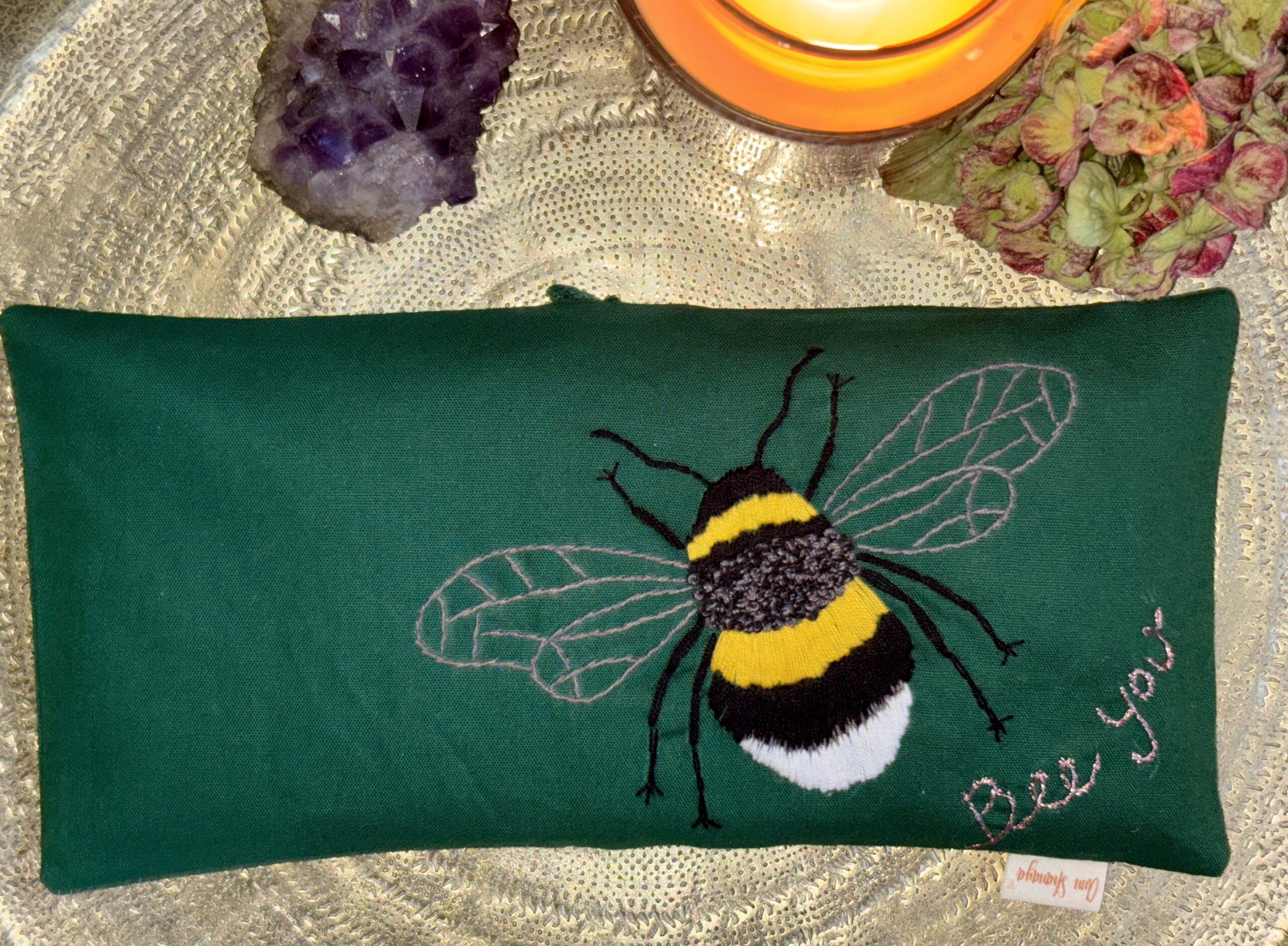 Håndbroderet øjenpude bee u | til stille rum i hverdagen