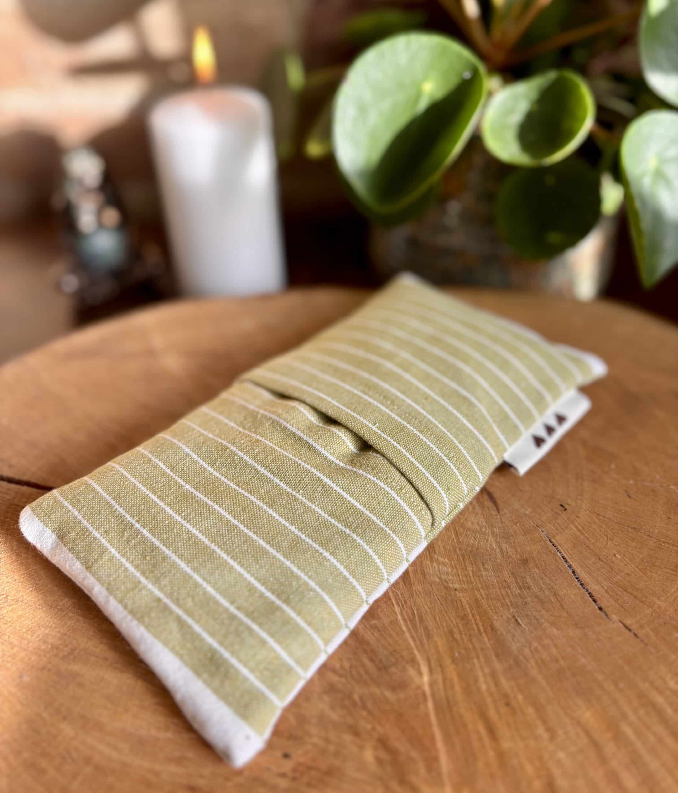 Øjenpude med hvedekerner er en let, lille pude designet til at hjælpe dig med at slappe af og finde indre ro. En øjenpude er en fantastisk måde at sænke stressniveauet og berolige nervesystemet og et overaktivt sind fyldt med mange tanker.